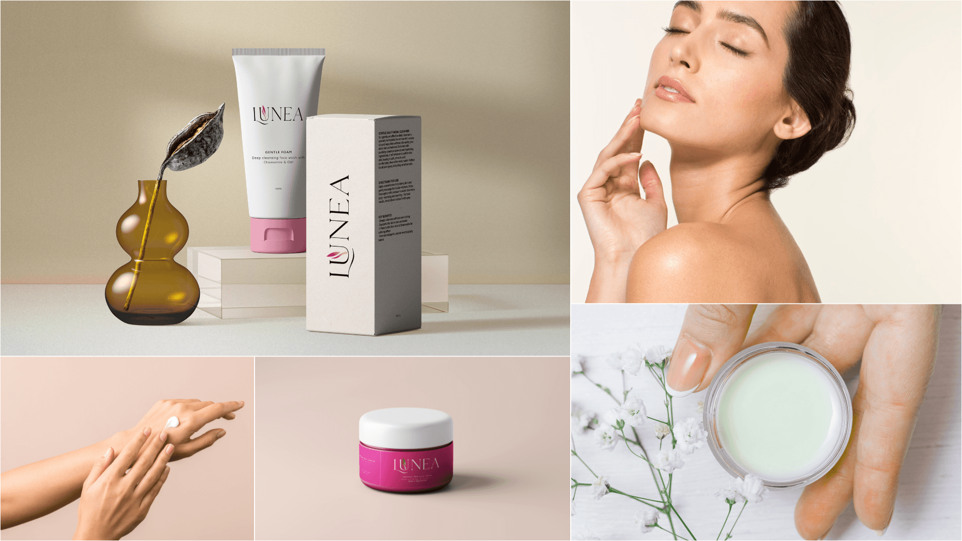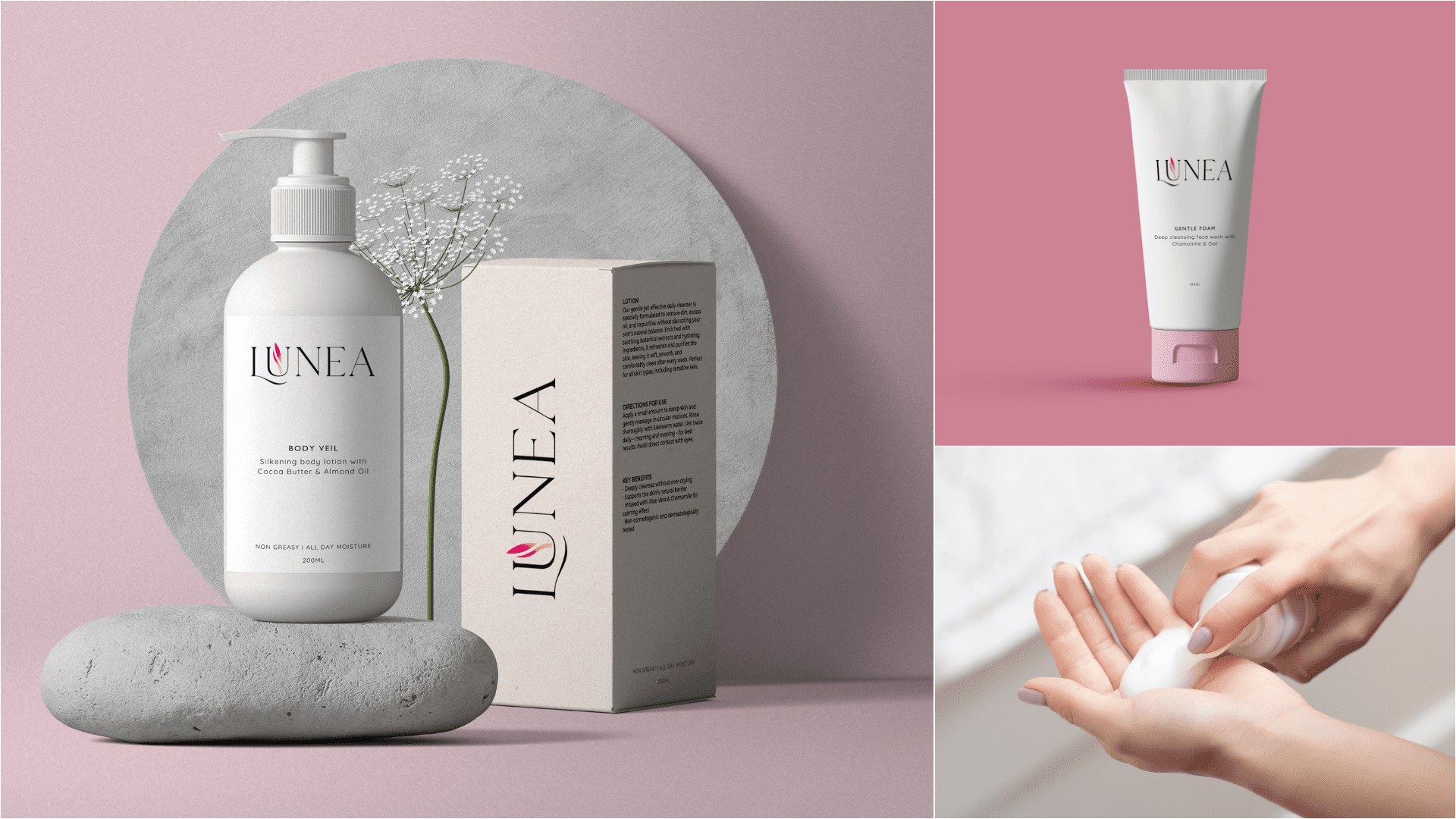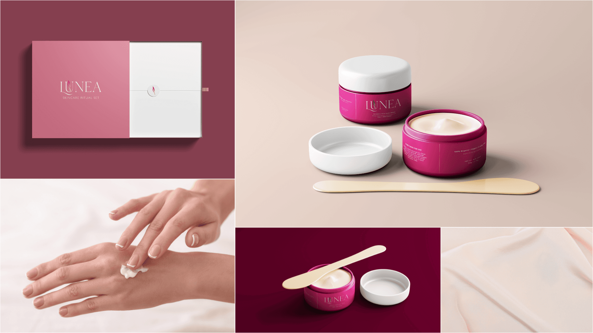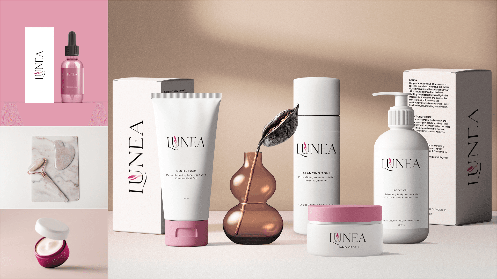 Lunea is a conceptual skincare brand inspired by the quiet elegance of Ipomoea Alba; the moonflower that blooms in stillness. This branding project presents a refined identity system including logo design, packaging, color strategy, and print applications. A soft palette of deep rose, blush peach, dusty rose, stone, and latte tones defines the visual language, expressing warmth, femininity, and understated luxury.The design embraces minimal composition and delicate typography to communicate purity, calm, and confidence. Every detail reflects balance and softness, capturing the essence of skincare that nurtures gently yet effectively. Each touchpoint reinforces Lunea’s core message: Glow softly. Bloom confidently.