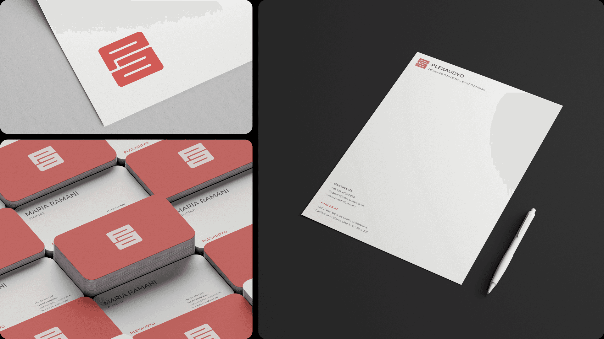Plexaudyo is a conceptual speaker brand designed to reflect bold sound and modern minimalism. This branding project includes a complete identity system: logo, letterhead, business card, product packaging, building signage, poster, and print applications. Montserrat was chosen as the primary typeface to reflect the brand’s clean, confident personality. The design emphasizes clarity, portability, and power, capturing the essence of a speaker that looks sleek and sounds even better. Every touchpoint reinforces Plexaudyo’s core message: Designed for detail. Built for bass.